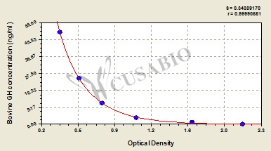 To assess the linearity of the assay, samples were spiked with high concentrations of bovine GH in various matrices and diluted with the Sample Diluent to produce samples with values within the dynamic range of the assay.