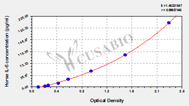 To assess the linearity of the assay, samples were spiked with high concentrations of horse IL-6 in various matrices and diluted with the Sample Diluent to produce samples with values within the dynamic range of the assay.