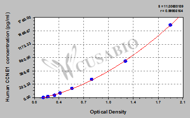 To assess the linearity of the assay, samples were spiked with high concentrations of human CCNE1 in various matrices and diluted with the Sample Diluent to produce samples with values within the dynamic range of the assay. Sample Serum(n=4) 1:1 Average % 100 Range % 95-104 1:2 Average % 95 Range % 90-100 1:4 Average % 91 Range % 86-95 1:8 Average % 84 Range % 80-88 -