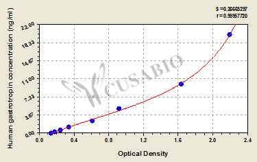 To assess the linearity of the assay, samples were spiked with high concentrations of human gastrotropin in various matrices and diluted with the Sample Diluent to produce samples with values within the dynamic range of the assay. Sample Serum(n=4) 1:1 Average % 90 Range % 82-94 1:2 Average % 97 Range % 91-101 1:4 Average % 94 Range % 85-97 1:8 Average % 90 Range % 84-95 -