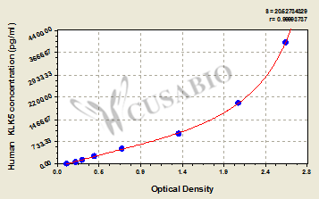 產品描述:人激肽釋放酶-5(KLK5)酶聯免疫試劑盒(CSB-EL012456HU)為雙抗夾心法ELISA試劑盒,定量檢測血清、血漿、組織培養上清液、組織勻漿、唾液樣本中的KLK5含量。KLK5 即激肽釋放酶 5,是絲氨酸蛋白酶家族成員。它參與皮膚角質形成細胞的分化和脫屑等生理過程。研究發現其異常表達與皮膚疾病如特異性皮炎相關,可能通過調控炎癥反應、影響皮膚屏障功能等機制發揮作用,是皮膚病研究潛在靶點。試劑盒檢測范圍為62.5 pg/mL-4000 pg/mL,可用于體外研究KLK5在皮膚病模型、腫瘤細胞分泌行為或唾液生物標志物篩選等場景中的動態變化,為探索相關疾病的分子機制提供定量數據支持本品僅用于科研,不用于臨床診斷,產品具體參數及操作步驟詳見產品說明書。