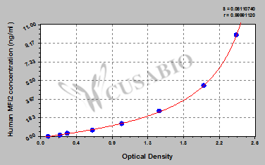 To assess the linearity of the assay, samples were spiked with high concentrations of human MFI2 in various matrices and diluted with the Sample Diluent to produce samples with values within the dynamic range of the assay.