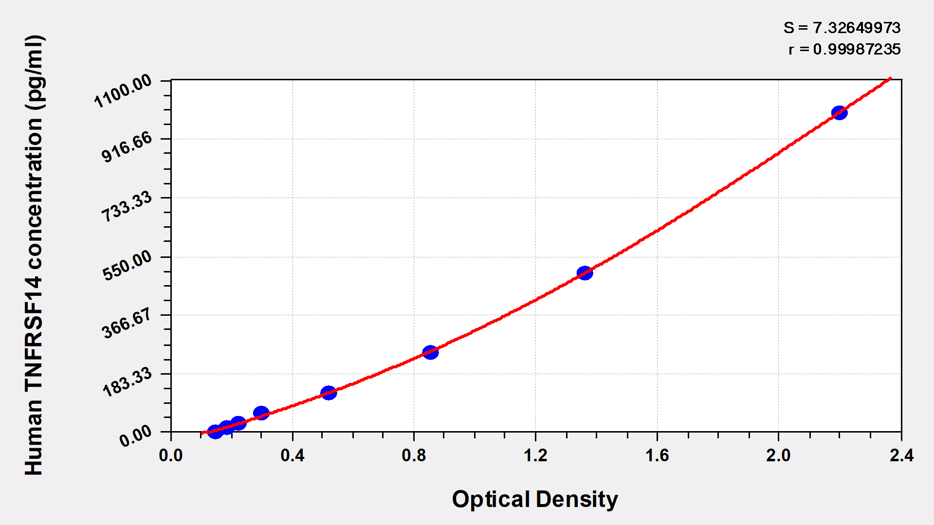 To assess the linearity of the assay, samples were spiked with high concentrations of human TNFRSF14 in various matrices and diluted with the Sample Diluent to produce samples with values within the dynamic range of the assay.