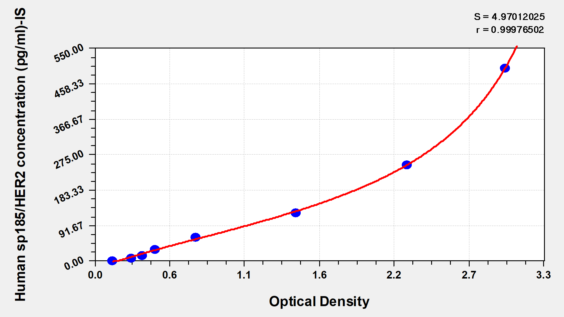 To assess the linearity of the assay, samples were spiked with high concentrations of human sp185/HER2 in various matrices and diluted with the Sample Diluent to produce samples with values within the dynamic range of the assay.
