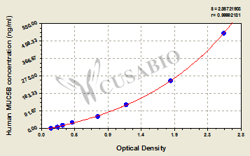 To assess the linearity of the assay, samples were spiked with high concentrations of human MUC5B in various matrices and diluted with the Sample Diluent to produce samples with values within the dynamic range of the assay. Sample Serum(n=4) 1:1 Average % 96 Range % 92-101 1:2 Average % 99 Range % 92-108 1:4 Average % 94 Range % 90-98 1:8 Average % 97 Range % 91-103 -