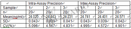 Inter-assay Precision (Precision between assays):CV%<10%