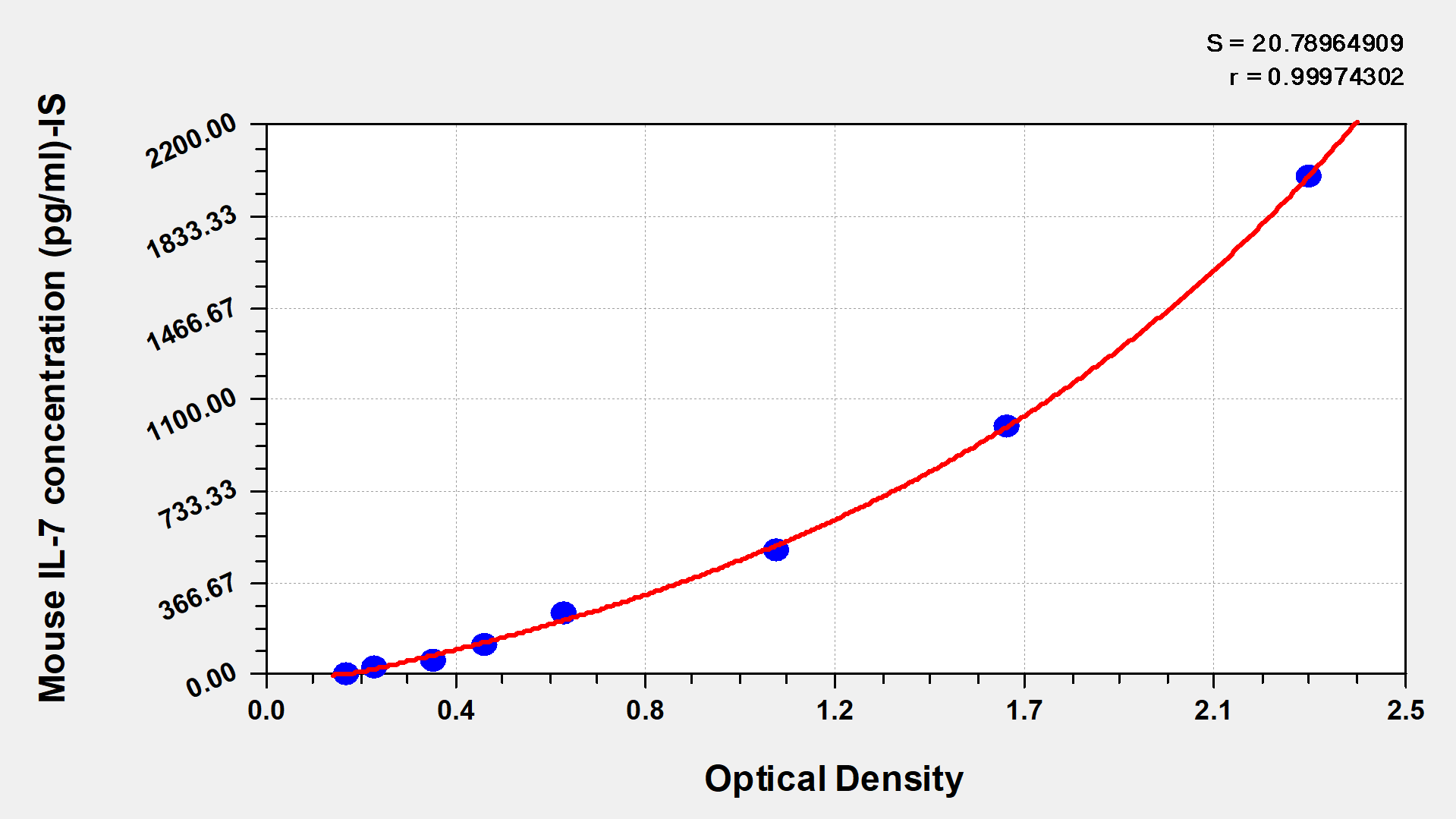 To assess the linearity of the assay, samples were spiked with high concentrations of mouse IL-7 in various matrices and diluted with the Sample Diluent to produce samples with values within the dynamic range of the assay.