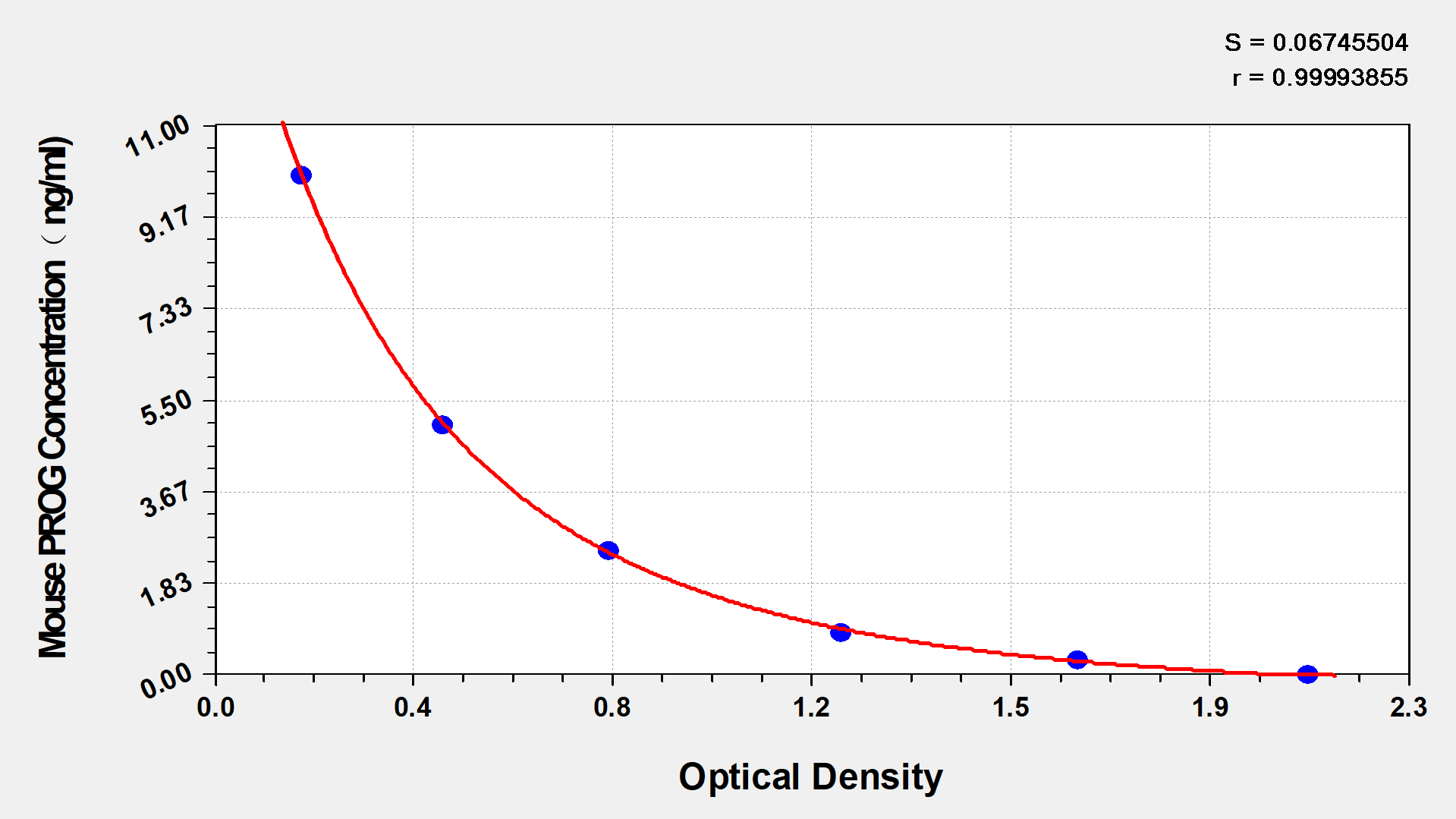 To assess the linearity of the assay, samples were spiked with high concentrations of mouse PROG in various matrices and diluted with the Sample Diluent to produce samples with values within the dynamic range of the assay.