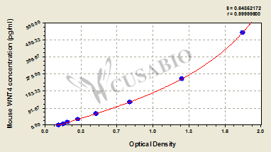 To assess the linearity of the assay, samples were spiked with high concentrations of mouse WNT4 in various matrices and diluted with the Sample Diluent to produce samples with values within the dynamic range of the assay. Sample Serum(n=4) 1:1 Average % 86 Range % 82-91 1:2 Average % 101 Range % 98-105 1:4 Average % 87 Range % 84-91 1:8 Average % 100 Range % 95-105 -