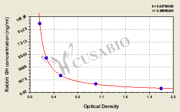 To assess the linearity of the assay, samples were spiked with high concentrations of rabbit GH in various matrices and diluted with the Sample Diluent to produce samples with values within the dynamic range of the assay.