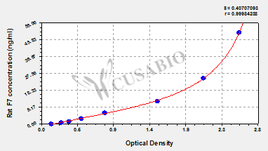 To assess the linearity of the assay, samples were spiked with high concentrations of rat F7 in various matrices and diluted with the Sample Diluent to produce samples with values within the dynamic range of the assay. Sample Serum(n=4) 1:200 Average % 91 Range % 86-98 1:400 Average % 97 Range % 92-106 1:800 Average % 93 Range % 88-99 1:1600 Average % 89 Range % 83-95 -