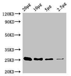 Positive WB detected in: A549 whole cell lysate at 20μg, 10μg, 5μg, 2.5μg whole cell lysate