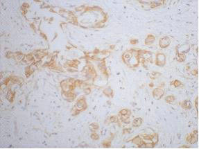 • IHC staining of human breast cancer tissue, diluted at 1:200.