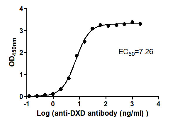 Activity: Measured by its binding ability in a functional ELISA. Immobilized ADC-1(DXD) at 2 μg/mL can bind Anti-DXD-HRP antibody, the EC50 is 9.268 to 11.37 ng/mL. -