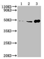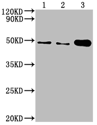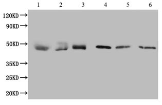 Positive WB detected in: HepG2 whole cell lysate at 20μg, 10μg, 5μg, 2.5μg, 1.25μg, 0.625μg