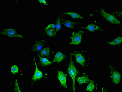 Immunofluorescent analysis of U251 cells using CSB-MA009369A0m at a dilution of 1:100 and Alexa Fluor 488-congugated AffiniPure Goat Anti-Mouse IgG(H+L).