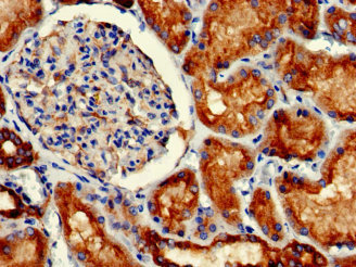Immunohistochemistry of paraffin-embedded human kidney tissue using CSB-MA009369A0m at dilution of 1:100