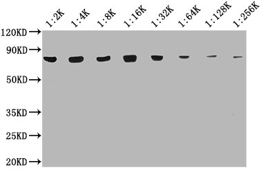 HSPA8 antibody at 1:2000, 1:4000, 1:8000, 1:16000, 1:32000, 1:64000, 1:128000, 1:256000