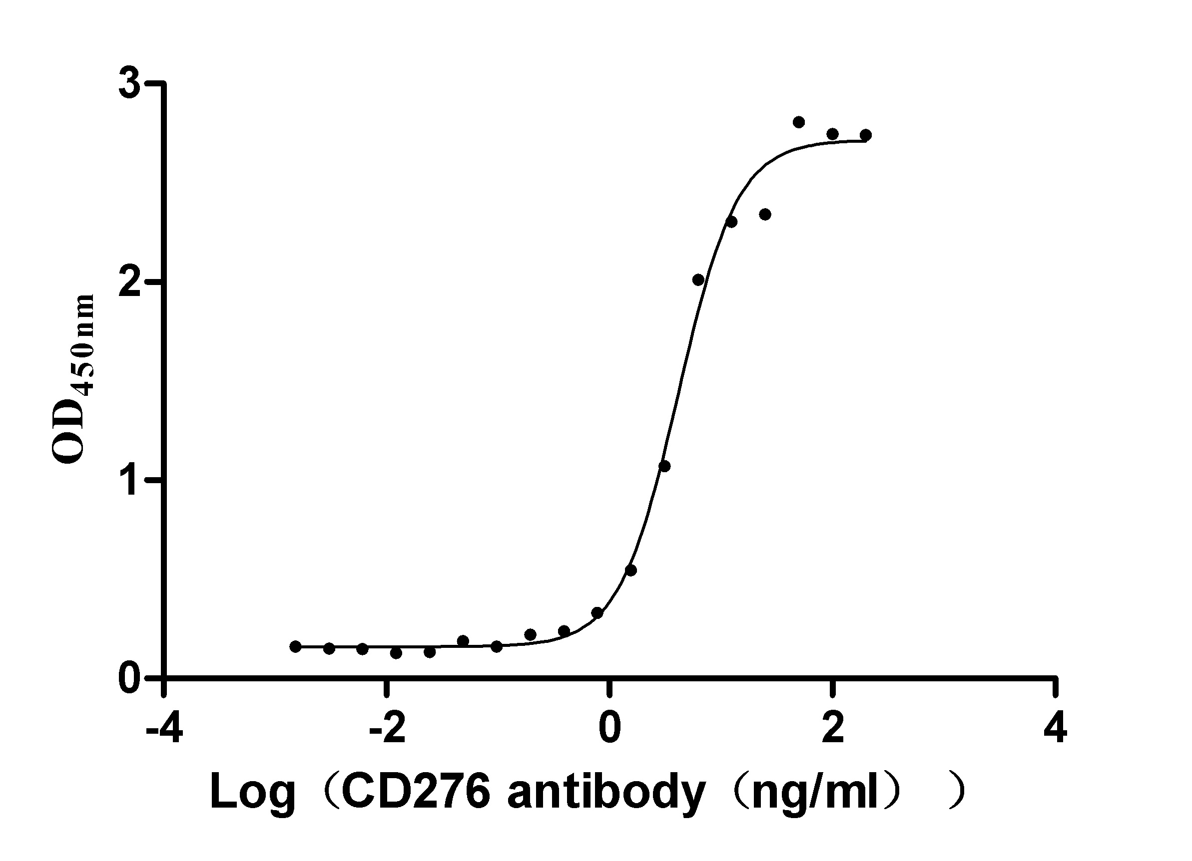 Measured by its binding ability in a functional ELISA. Immobilized CD276 at 2 μg/ml can bind Anti-CD276 rabbit monoclonal antibody, the EC50 of human CD276 protein is 1.961-2.243 ng/ml. Biological Activity Assay