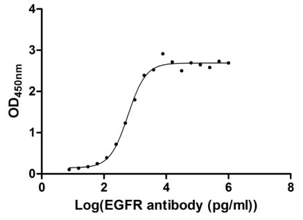 Measured by its binding ability in a functional ELISA. Immobilized EGFR at 1 μg/ml can bind Anti-EGFR recombinant antibody, the EC50 of human EGFR protein is 2.867-3.571 ng/ml.