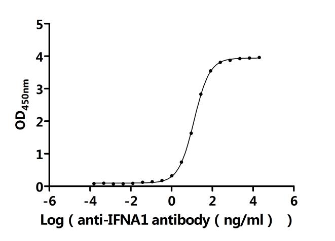 生物活性:Measured by its binding ability in a functional ELISA.Immobilized Human IFNA1 at 2 μg/mL can bind Anti-IFNA1 recombinant antibody(CSB-RA365592MA1HU). The EC50 is 12.11-13.37 ng/mL.