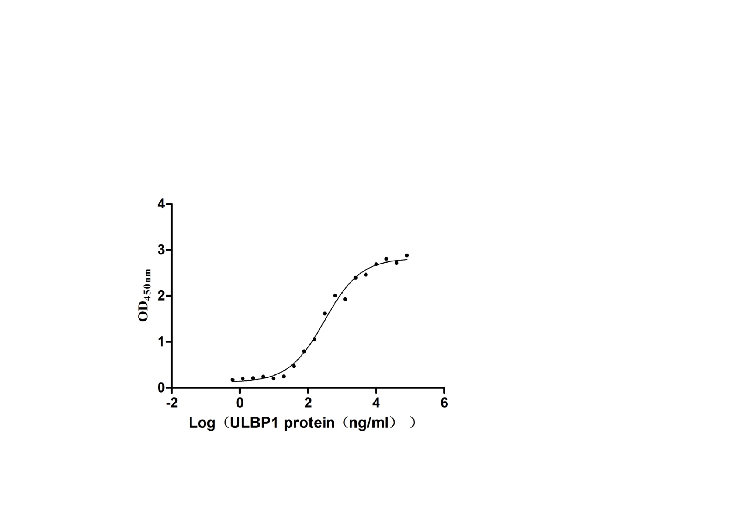 Measured by its binding ability in a functional ELISA. Immobilized KLRK1 at 10 μg/ml can bind human Biotinylated ULBP1(CSB-MP887177HUj1-B), the EC50 is 4.254-7.295 ng/ml. Biological Activity Assay -