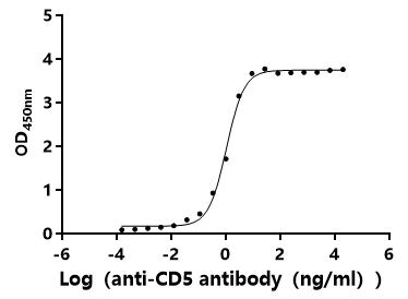 生物活性:Measured by its binding ability in a functional ELISA.Immobilized Human CD5 at 2 μg/mL can bind Anti-CD5 recombinant antibody (CSB-RA004942MA1HU).The EC50 is 0.9640-1.171 ng/mL.