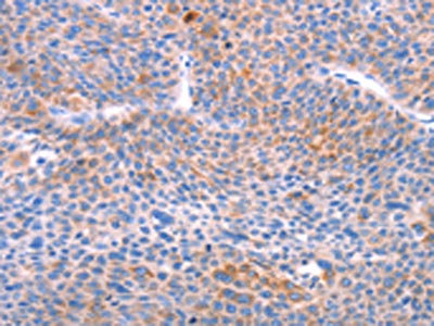 • The image on the left is immunohistochemistry of paraffin-embedded Human liver cancer tissue using CSB-PA928876(AADAC Antibody) at dilution 1/30, on the right is treated with fusion protein. (Original magnification: ×200)