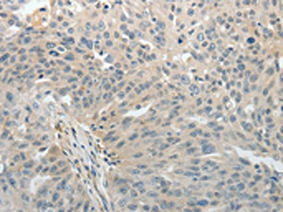 • The image on the left is immunohistochemistry of paraffin-embedded Human lung cancer tissue using CSB-PA447968(ABCB11 Antibody) at dilution 1/15, on the right is treated with synthetic peptide. (Original magnification: ×200)