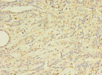Immunohistochemistry of paraffin-embedded human breast cancer using CSB-PA643574LA01HU at dilution of 1:100
