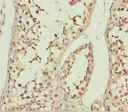 Immunohistochemistry of paraffin-embedded human testis tissue using CSB-PA868325ESR1HU at dilution of 1:100