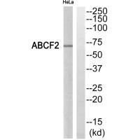 • Western blot analysis of extracts from HeLa cells, using ABCF2 antibody.