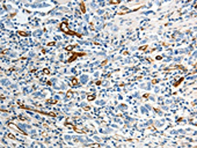 • The image on the left is immunohistochemistry of paraffin-embedded Human gastic cancer tissue using CSB-PA127583(ABCG1 Antibody) at dilution 1/40, on the right is treated with synthetic peptide. (Original magnification: ×200)