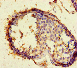 Immunohistochemistry of paraffin-embedded human testis tissue using CSB-PA866317LA01HU at dilution of 1:100