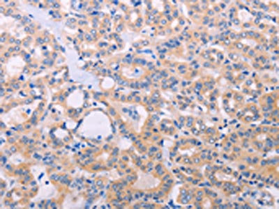 • The image on the left is immunohistochemistry of paraffin-embedded Human thyroid cancer tissue using CSB-PA942397(ADCY5 Antibody) at dilution 1/30, on the right is treated with synthetic peptide. (Original magnification: ×200)