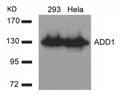 Western blot analysis of extracts from 293 and Hela cells using ADD1(Ab-726) Antibody.