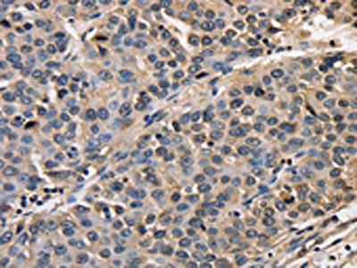 • The image on the left is immunohistochemistry of paraffin-embedded Human liver cancer tissue using CSB-PA251527(AFP Antibody) at dilution 1/50, on the right is treated with fusion protein. (Original magnification: ×200)