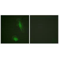 Immunofluorescence analysis of HeLa cells, using Akt (Ab-129) antibody.