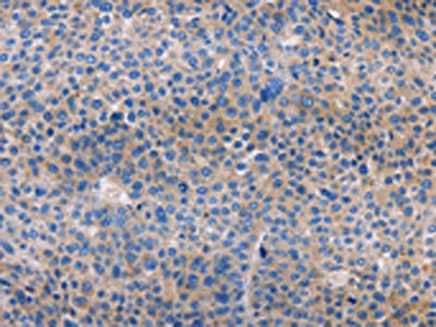 The image on the left is immunohistochemistry of paraffin-embedded Human liver cancer tissue using CSB-PA248410(AMACR Antibody) at dilution 1/30, on the right is treated with fusion protein. (Original magnification: ×200)