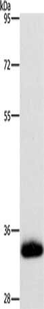 • Gel: 8%SDS-PAGE, Lysate: 60 μg, Lane: Human testis tissue, Primary antibody: CSB-PA194113(AMBP Antibody) at dilution 1/500, Secondary antibody: Goat anti rabbit IgG at 1/8000 dilution, Exposure time: 10 seconds
