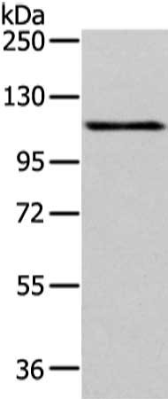 • Gel: 6%SDS-PAGE, Lysate: 40 μg, Lane: Hela cell, Primary antibody: CSB-PA086984(AP2A1 Antibody) at dilution 1/200 dilution, Secondary antibody: Goat anti rabbit IgG at 1/8000 dilution, Exposure time: 1 minute