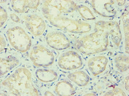 Immunohistochemistry of paraffin-embedded human kidney tissue using CSB-PA001940ESR2HU at dilution of 1:100