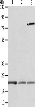 • Gel: 12+15%SDS-PAGE, Lysate: 40 μg, Lane 1-3: Human fetal liver tissue, Human liver cancer tissue, human placenta tissue, Primary antibody: CSB-PA593648(APOM Antibody) at dilution 1/300, Secondary antibody: Goat anti rabbit IgG at 1/8000 dilution, Exposure time: 1 minute
