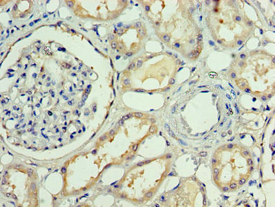 • Immunohistochemistry of paraffin-embedded human kidney tissue using CSB-PA07179A0Rb at dilution of 1:100