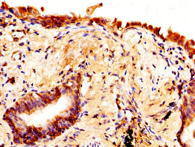 IHC image of CSB-PA11137A0Rb diluted at 1:370 and staining in paraffin-embedded human lung cancer performed on a Leica BondTM system. After dewaxing and hydration, antigen retrieval was mediated by high pressure in a citrate buffer (pH 6.0). Section was blocked with 10% normal goat serum 30min at RT. Then primary antibody (1% BSA) was incubated at 4°C overnight. The primary is detected by a biotinylated secondary antibody and visualized using an HRP conjugated SP system.