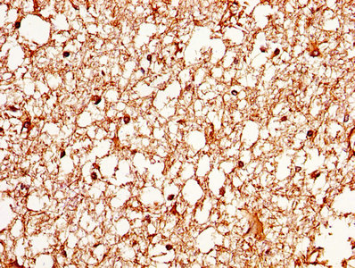 IHC image of CSB-PA11137A0Rb diluted at 1:370 and staining in paraffin-embedded human brain tissue performed on a Leica BondTM system. After dewaxing and hydration, antigen retrieval was mediated by high pressure in a citrate buffer (pH 6.0). Section was blocked with 10% normal goat serum 30min at RT. Then primary antibody (1% BSA) was incubated at 4°C overnight. The primary is detected by a biotinylated secondary antibody and visualized using an HRP conjugated SP system.