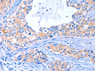 • The image on the left is immunohistochemistry of paraffin-embedded Human cervical cancer tissue using CSB-PA133439(ARRB1 Antibody) at dilution 1/50, on the right is treated with fusion protein. (Original magnification: ×200)