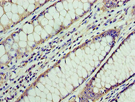 Immunohistochemistry of paraffin-embedded human colon cancer using CSB-PA878897ESR2HU at dilution of 1:100