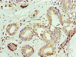 Immunohistochemistry of paraffin-embedded human breast cancer using CSB-PA878897ESR2HU at dilution of 1:100