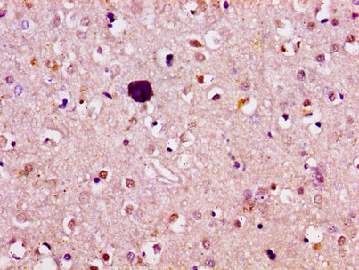 • IHC image of CSB-PA855500LA01HU diluted at 1:100 and staining in paraffin-embedded human brain tissue performed on a Leica BondTM system. After dewaxing and hydration, antigen retrieval was mediated by high pressure in a citrate buffer (pH 6.0). Section was blocked with 10% normal goat serum 30min at RT. Then primary antibody (1% BSA) was incubated at 4°C overnight. The primary is detected by a biotinylated secondary antibody and visualized using an HRP conjugated SP system.